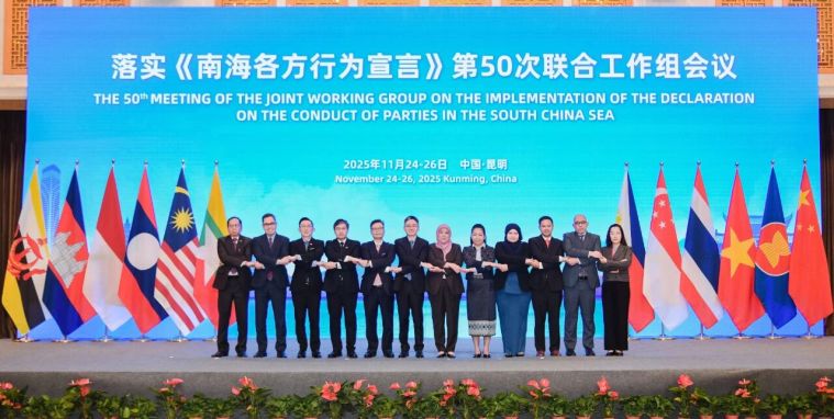2025年11月24日至26日,中国和东盟十国在云南昆明举行落实《南海各方行为宣言》第50次联合工作组会。会议由外交部边海司副司长檀勍生与马来西亚外交部海洋司司长阿迪娜共同主持。