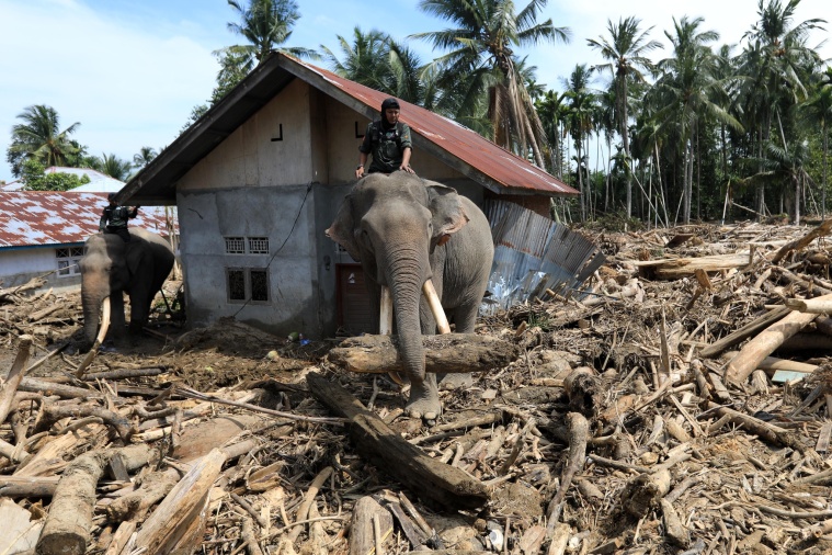 On Indonesia’s island of Sumatra, floods and landslides triggered by Tropical Cyclone Senyar left devastation in their wake. Rescue efforts relied not only on people and machinery, but also on a special group of helpers: elephants. In Pidie Jaya, Aceh Province, four trained Sumatran elephants were deployed to disaster zones to clear fallen trees and help reopen blocked roads.