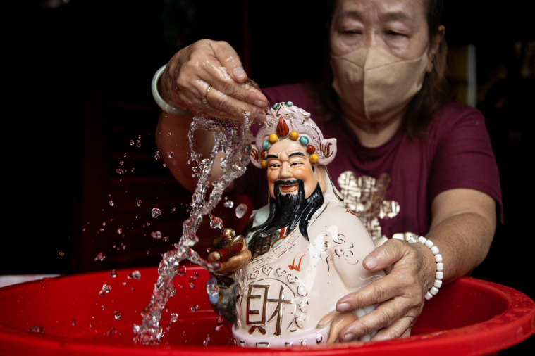 在印尼泗水,人们以传统仪式迎接新年。寺庙中,信众用茶水、玫瑰花水与檀香水为神像净身,寓意洗去旧尘、祈愿新年安康。花香与香火交织在空气中,庄严的仪式里满载对平安顺遂的深切寄托。