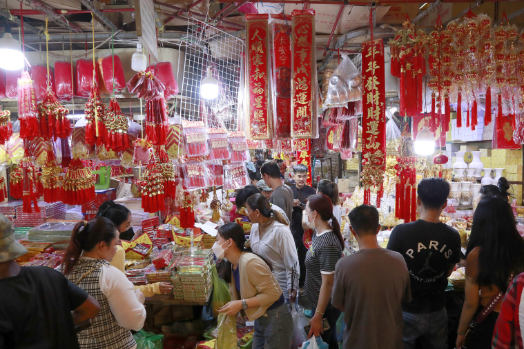 在柬埔寨首都金边,年味藏在热闹的市场里。沿街商铺摆满糖果、春联、灯笼等各式年货,当地居民穿梭其中,精心挑选食品与装饰,为2月17日的春节团圆时刻早早准备。随着华人文化的融入,春节在这里已逐渐成为一场全民参与的节庆。