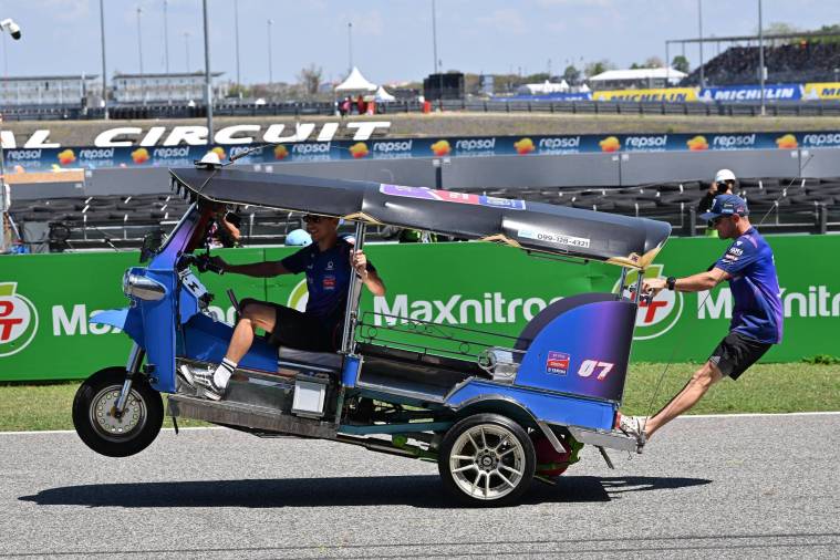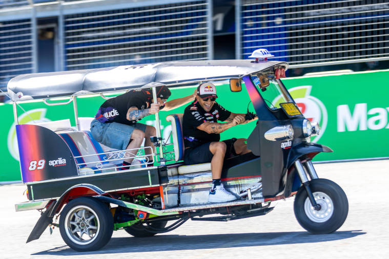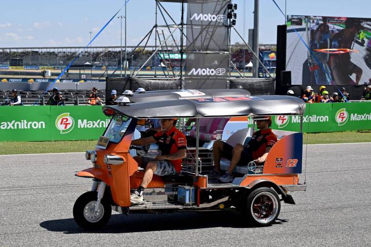 在2026赛季MotoGP泰国大奖赛举办期间,武里南赛道迎来了一群特殊的“表演嘉宾”。多辆色彩艳丽的嘟嘟车驶入赛道,进行了一场别开生面的趣味绕行展示,为紧张的顶级赛事增添了一道轻松欢乐的风景线。